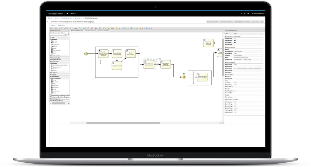 Schnell, einfach, effizient – die Fachabteilung sammelt Wissen, erstellt, ändert und pflegt selbsttätig ihre Prozessmodelle. Der BPMN 2.0 Standard gewährleistet die Weiterverwendung der Modelle z.B. zur Erzeugung von ausführbaren Workflows.