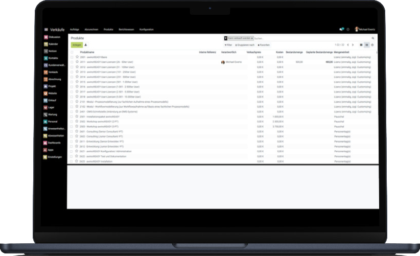 Weiterhin besteht bereits eine Kopplung von Odoo-ERP mit unserer hauseigenen Prozessmanagement-Plattform awino®EASY. So besteht für jeden unserer Kunden die Möglichkeit, individuelle Geschäftsprozesse auf Basis von Odoo-Daten zu entwicklen und in seine Organisation zu bringen. Somit bildet die Kombination aus beiden Systemen den Maßanzug für Ihre Unternehmensabläufe.